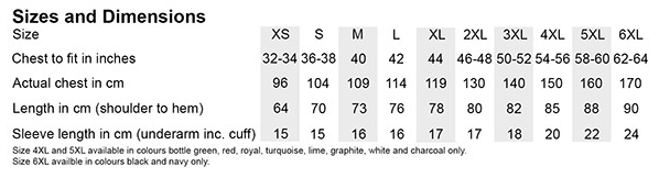| XS | S | M | L | XL | 2XL | 3XL | 4XL | 5XL | 6XL | |