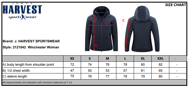 | 1/2 Chest (cm) | 47 | 50 | 53 | 57 | 61 | 65 |