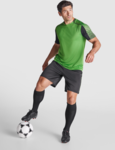 Unisex Sportset bestehend aus 2 T-Shirts + 1 Shorts. T-Shirts mit bedruckten Halbranglan-Ärmeln. Rundhals mit hinterem Kragenteil aus Trikotstoff. Die Farbe des zweiten T-Shirts setzt sich in umgekehrter Weise zusammen. Elastischer Hosenbund mit innenliegendem Kordelzug mit Sicherheitsnähten. Seitliches Kontrastband und Seitenschlitze am Hosenbein.
