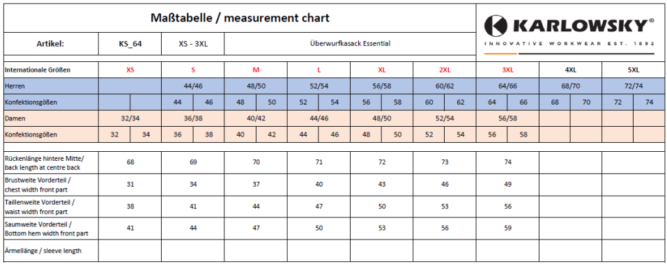 Karlowsky Überwurfkasack Essential KS 64